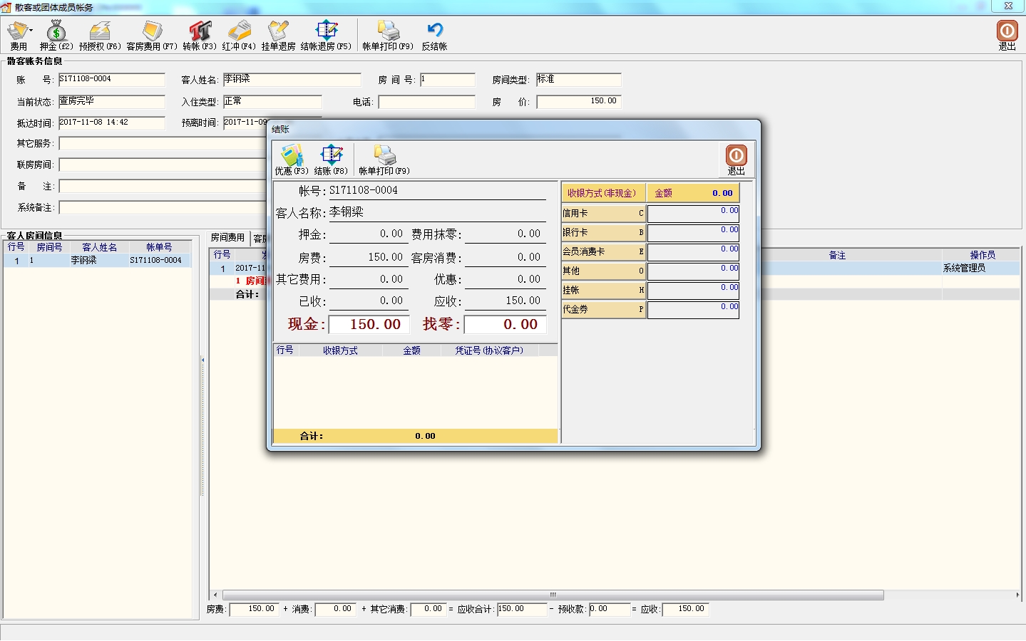 前台客人账务   结帐功能—部分结账及结帐退房   挂账处理